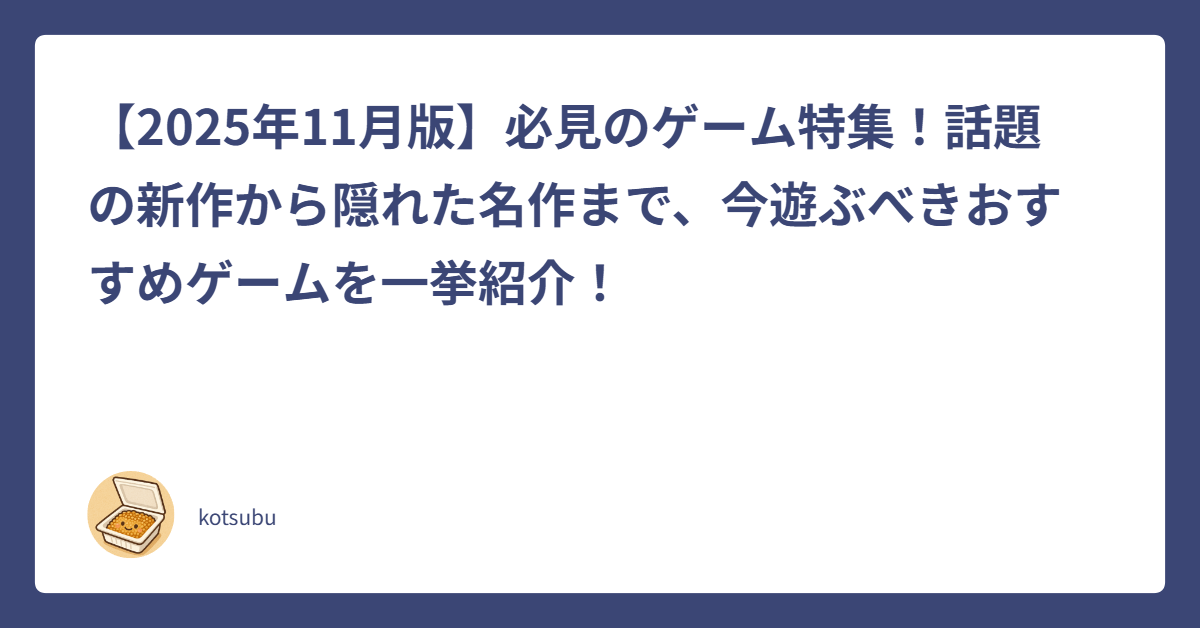 本記事では、2025年11月に「絶対に遊んでおくべき」と断言できるおすすめゲームを厳選してご紹介します。