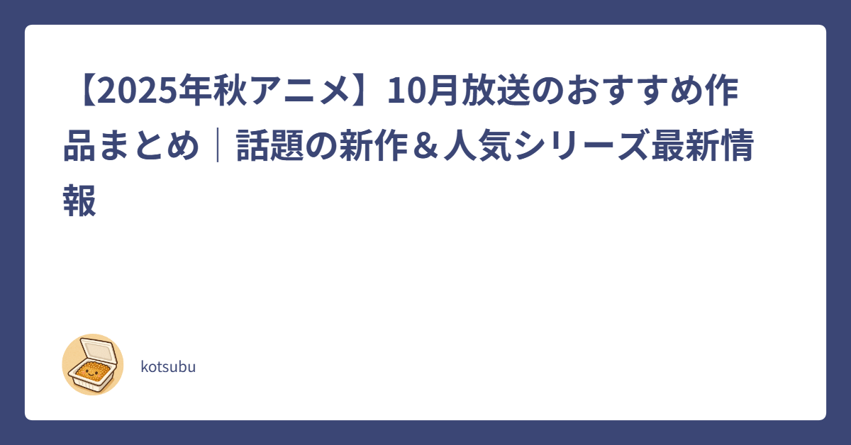 あらすじや見どころ、配信情報もまとめた“2025年10月アニメ完全ガイド”です。